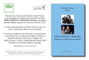 Más información »Lanzamiento del libro «Fértil provincia y señalada: Raúl Ruiz y el campo del cine chileno»